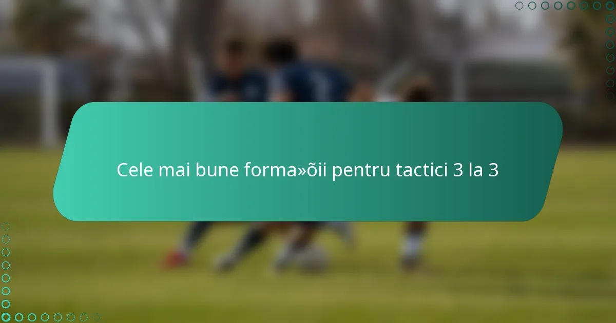 Formațiile eficiente pentru fotbalul pe trei se concentrează pe maximizarea muncii în echipă, utilizarea spațiului și rolurile jucătorilor. Formația potrivită poate îmbunătăți atât strategiile ofensive, cât și pe cele defensive, permițând echipelor să se adapteze la diferiți adversari și situații de joc.