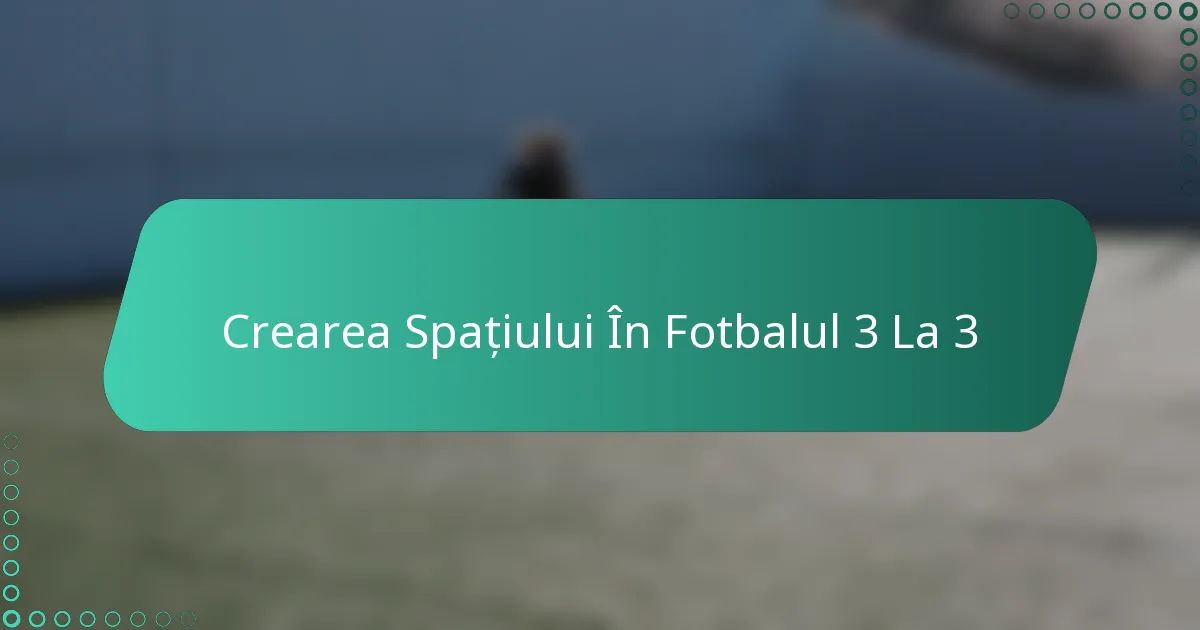 Crearea de spațiu în fotbalul 3 la 3 este crucială pentru îmbunătățirea performanței echipei și exploatarea slăbiciunilor defensive. Tactici eficiente, cum ar fi alergările fără minge, pasele rapide și suprasarcinile strategice, pot îmbunătăți semnificativ mișcarea și poziționarea jucătorilor. Prin exerciții țintite, jucătorii își pot dezvolta conștientizarea spațială și abilitățile de luare a deciziilor, permițându-le să utilizeze mai bine spațiul disponibil în situații de joc rapide.